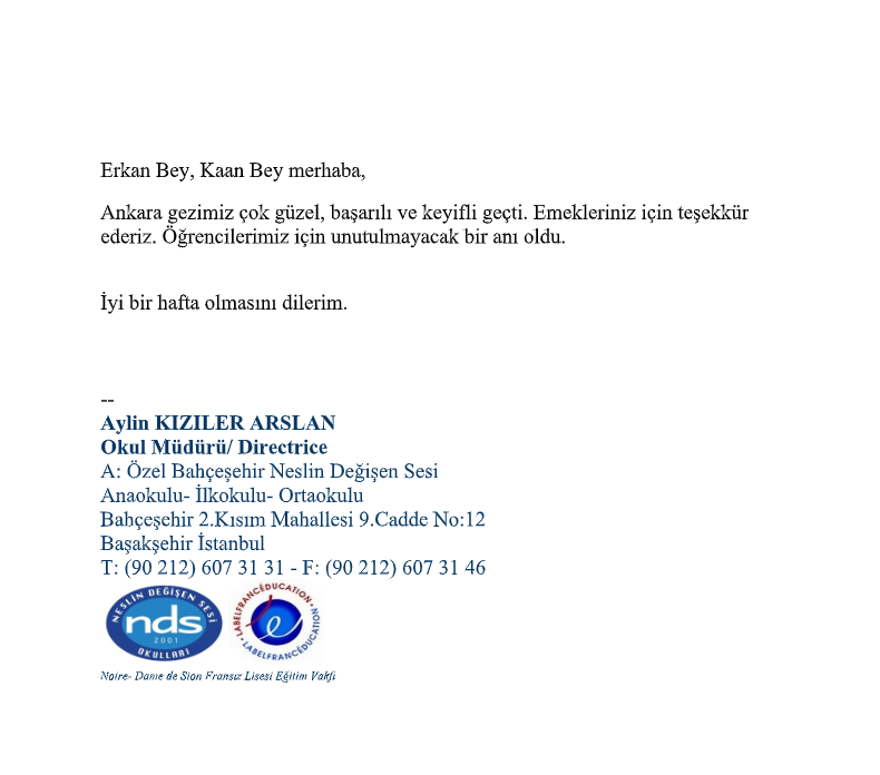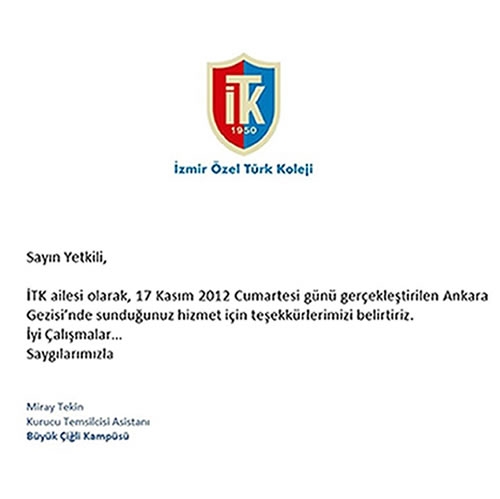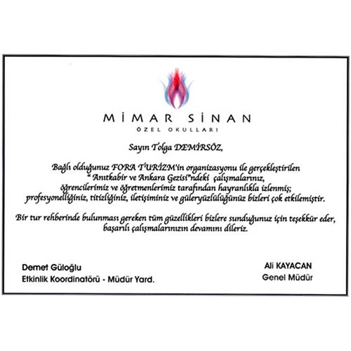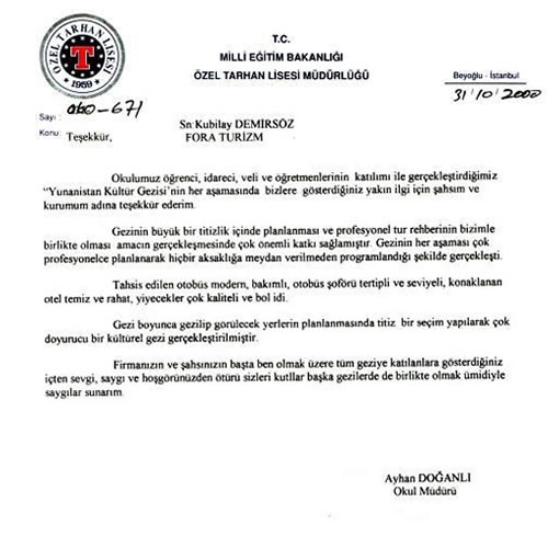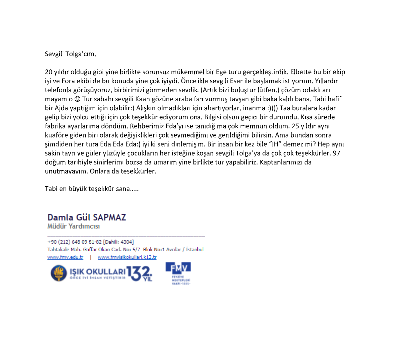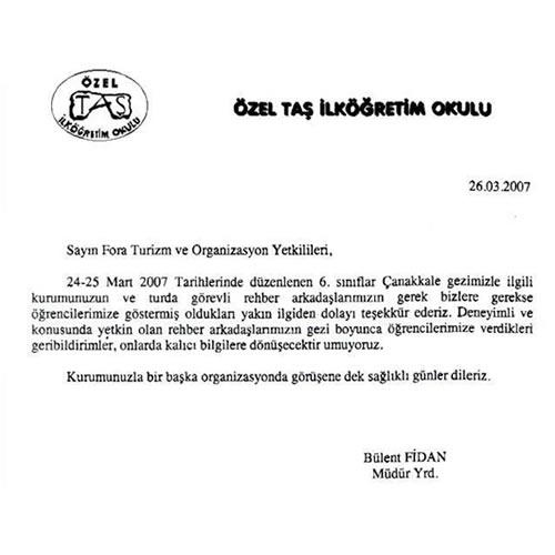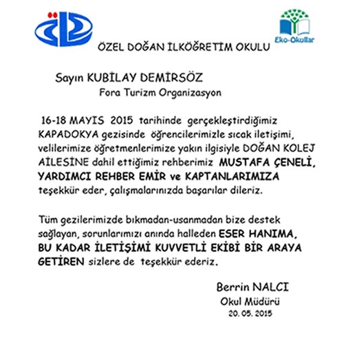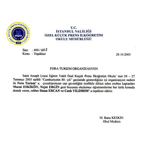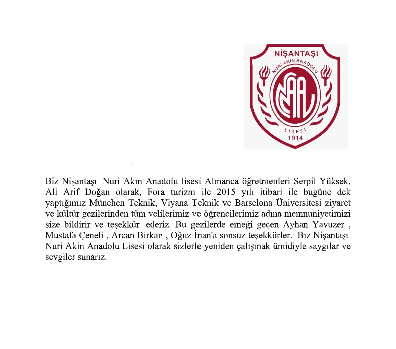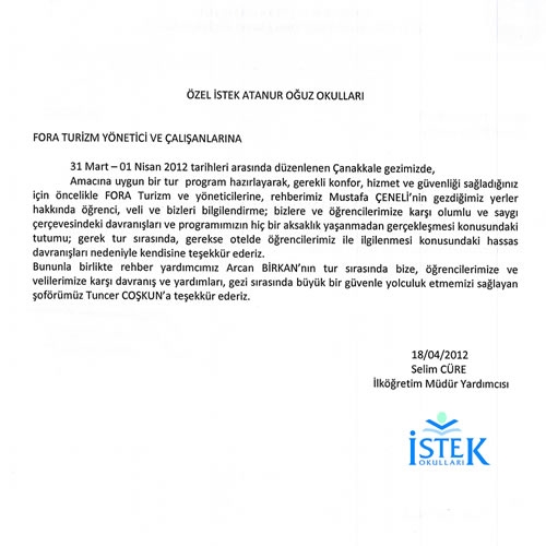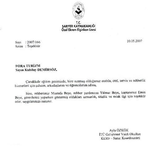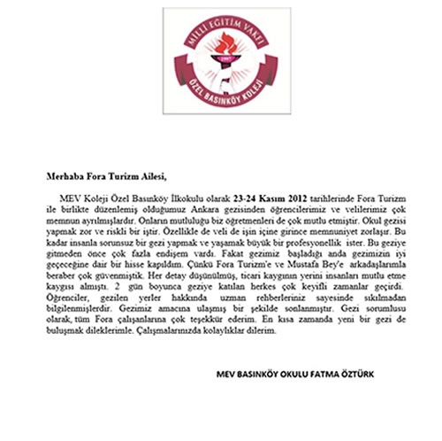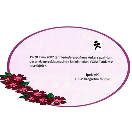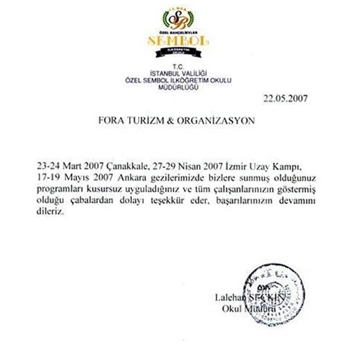 Fora Turizm'e İletilen Teşekkürler