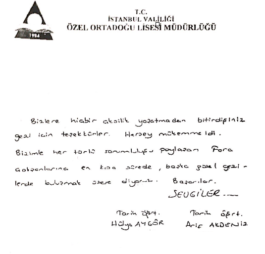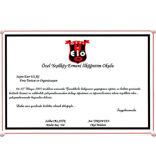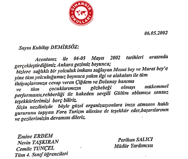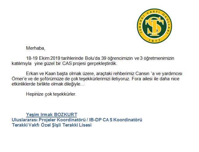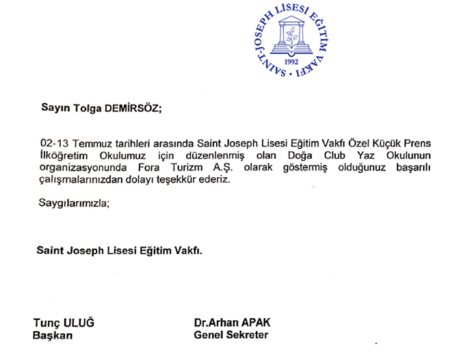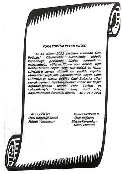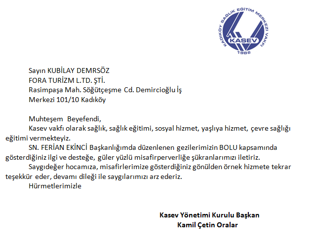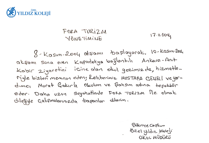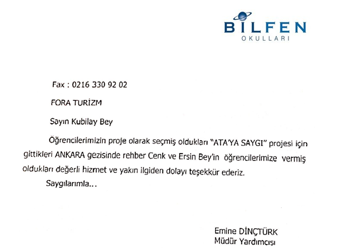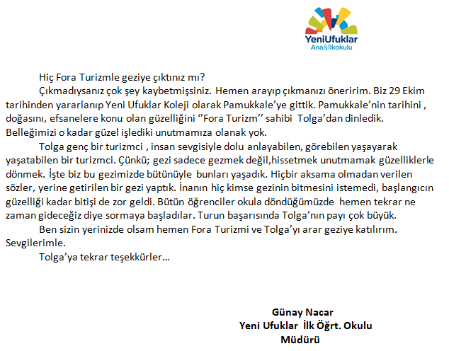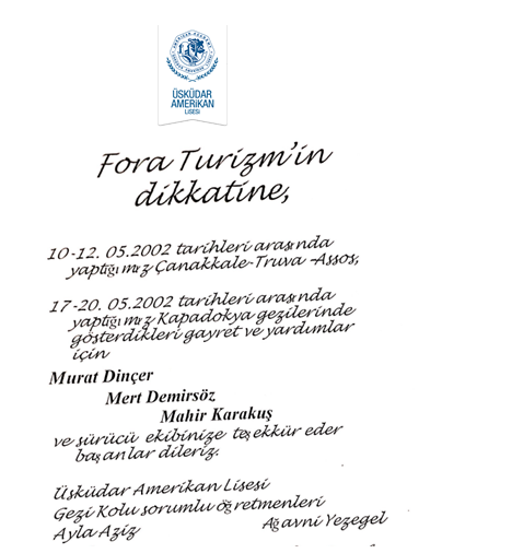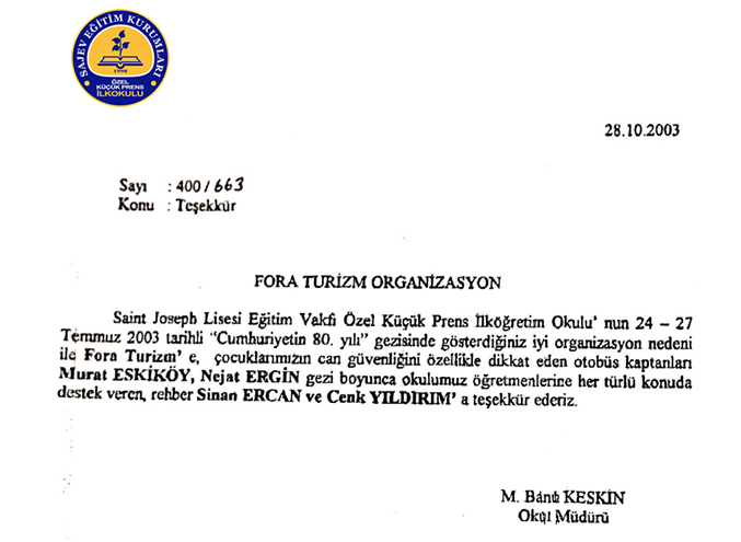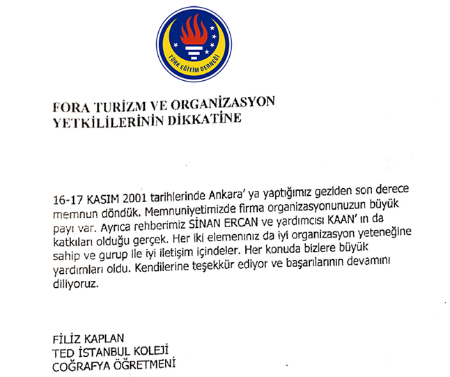 Fora Turizm'e İletilen Teşekkürler